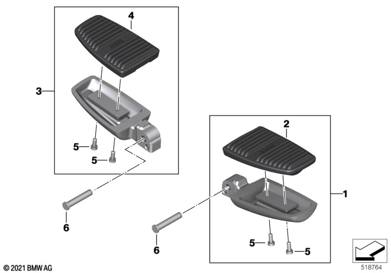 BMW Motorrad - Rear footrests for R 18 Transcont. (0L41, 0L43) - ECE