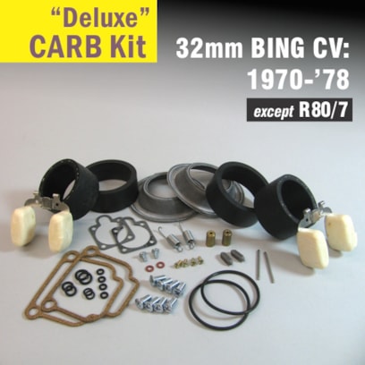This “Deluxe” Carburetor Rebuild Kit is for all 1970-1978 Airheads equipped with 32mm Bing CV (Constant Velocity) type carbs - EXCEPT 1978 R80/7.