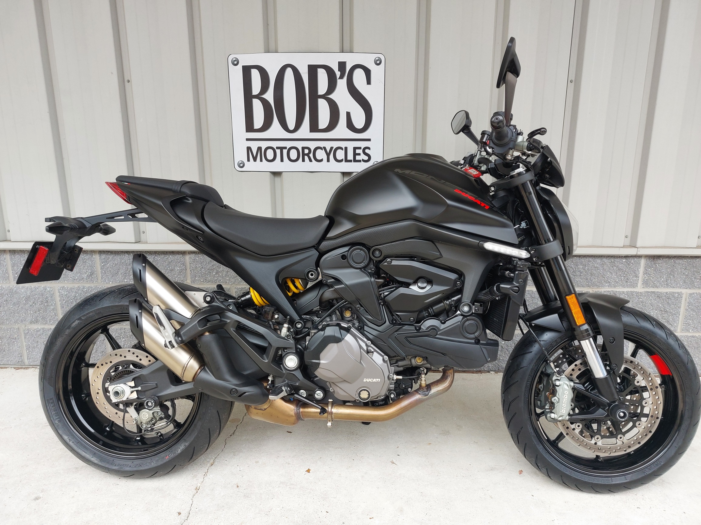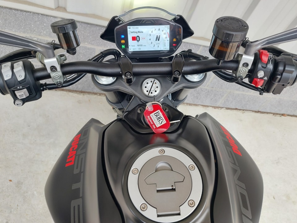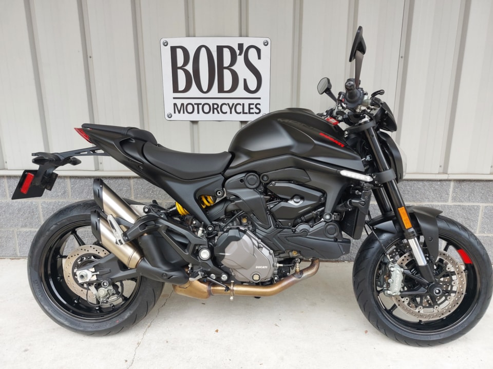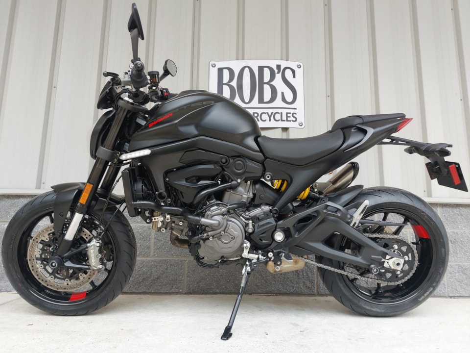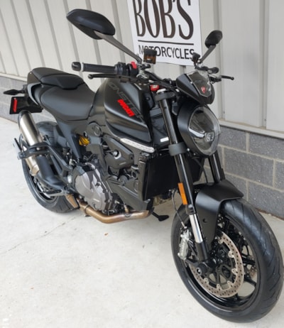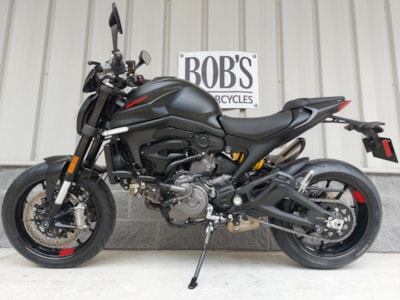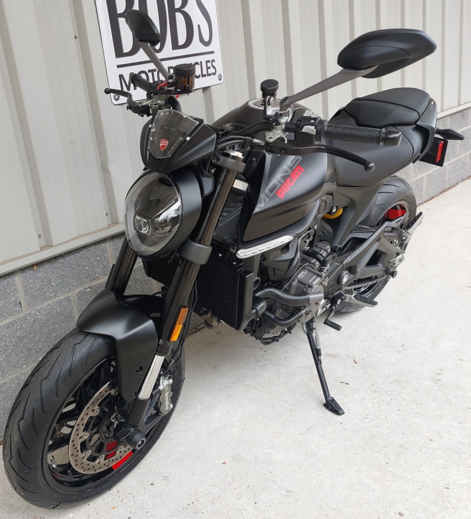Hey! Look at this immaculate, pre-owned 2023 Ducati Monster Plus! The Monster has long been one of America's favorite naked street rebel bikes — and very satisfying to ride. But with this 'Plus' version in arresting Dark Stealth trim, you get the added pleasure of imagining yourself starring in the latest Mission Impossible installment every time you ride. Move over, Tom Cruise!