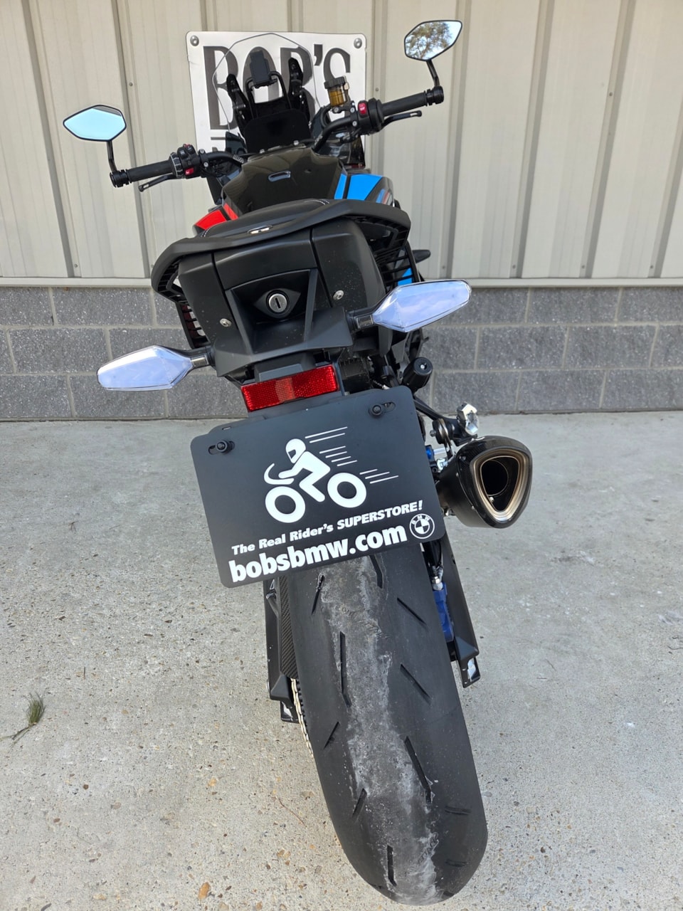 Ready? Take a seat, start the engine and dive into the M world. Behind you is the slim, performance-oriented rear with short license plate carrier. It's from this point you leave everything behind. You lead. You hear the incomparable sound that comes from the steep Akrapovic slip-on rear silencer. Your passenger also has the full M experience thanks to the passenger seat contour, slim grab handles and rear footrest bracket.