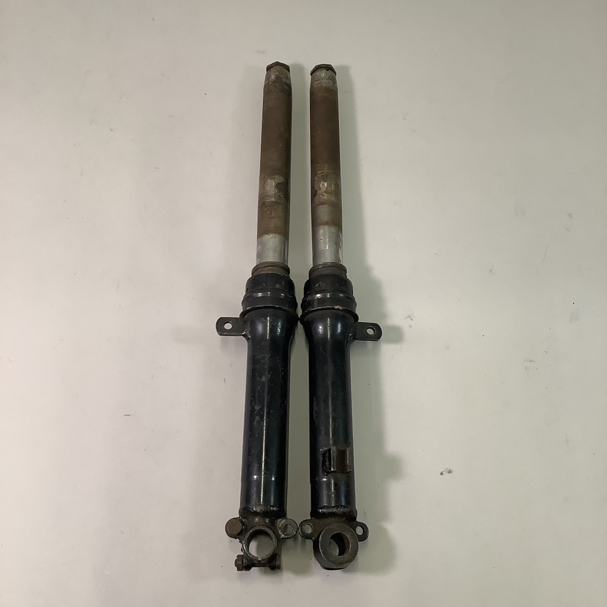 Fair condition, super rare pre-55 forks, they will need to be rebuilt but otherwise only show cosmetic damage. Complete as shown, chroming should be able to be refreshed.