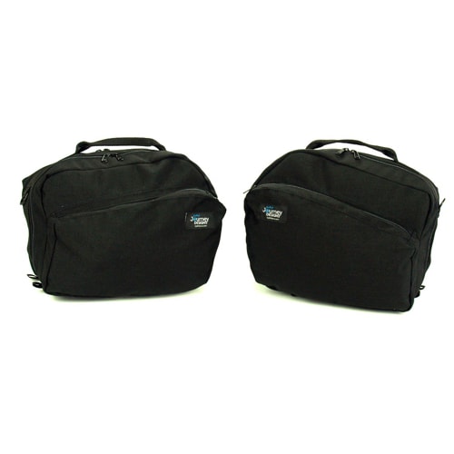Each bag has two inner mesh-lined zipped pockets, an external zipped full-sized pocket, and an external zipped pouch that fits the recess inside the side case. The 2-way zips on both sides of each bag allow for easy access to contents whether in or out of the bike. Each bag has D-rings fitted to allow the use of optional Shoulder Straps (available separately).
