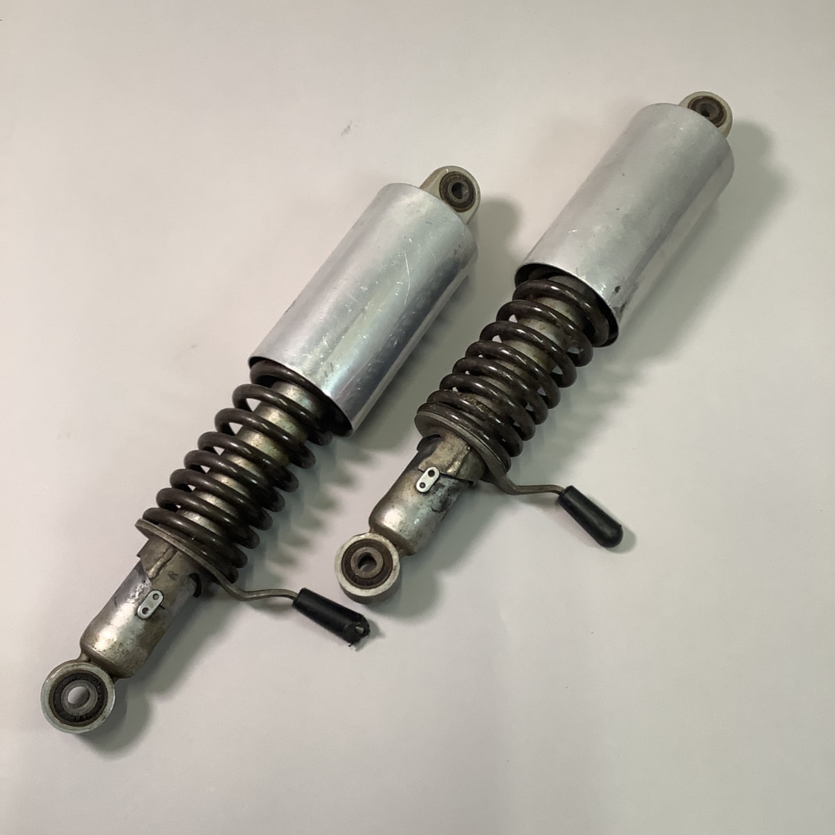 These shocks are good consmetic but will need to be rebuilt if to be used on the road, they are perfectly serviceable. Other than that the springs are in good shape and they dont have any major damages to the mounting mounting. The covers are also in good condition with the typical wear and tear for their age.