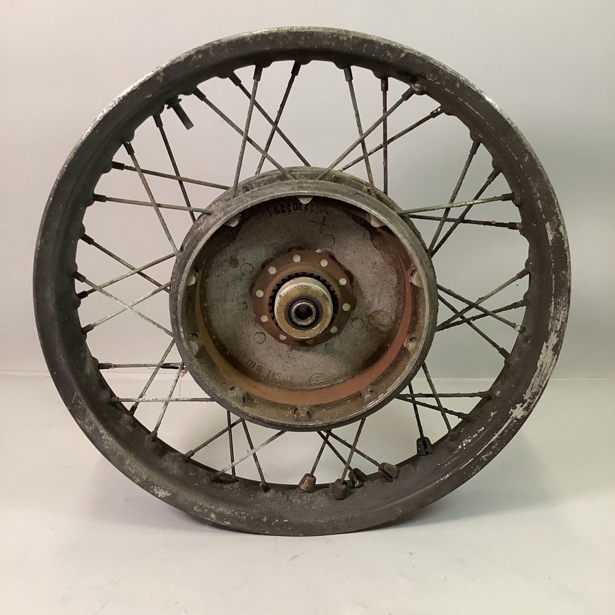 This rim is 2.15X18, Dirty but good condition wheel, fully round with no bends or cracks, could use a good cleaning and polish but otherwise in great condition.
