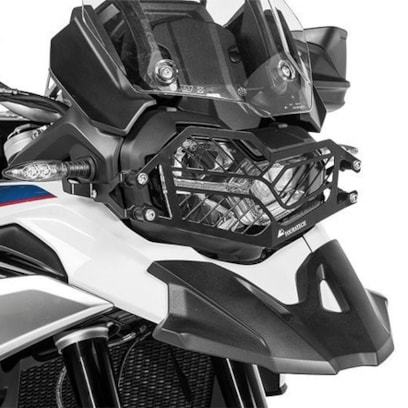 This quick-release headlight guard for the middle weight BMW adventure bike removes instantly for easy access to clean dust or dirt off the headlight assembly to maximize light output.